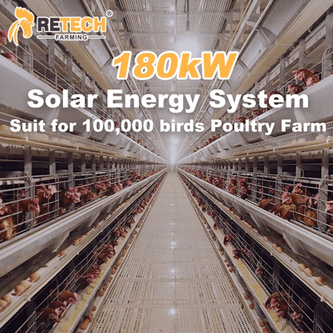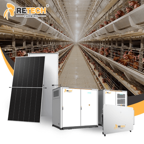 Retech will design an off-grid or grid-connected solution based on your local electricity situation. According to your electricity consumption, solar panels will be installed on the roof of the chicken coop to generate electricity. The excess electricity can be stored in an energy storage system and used for farm electricity during the night.